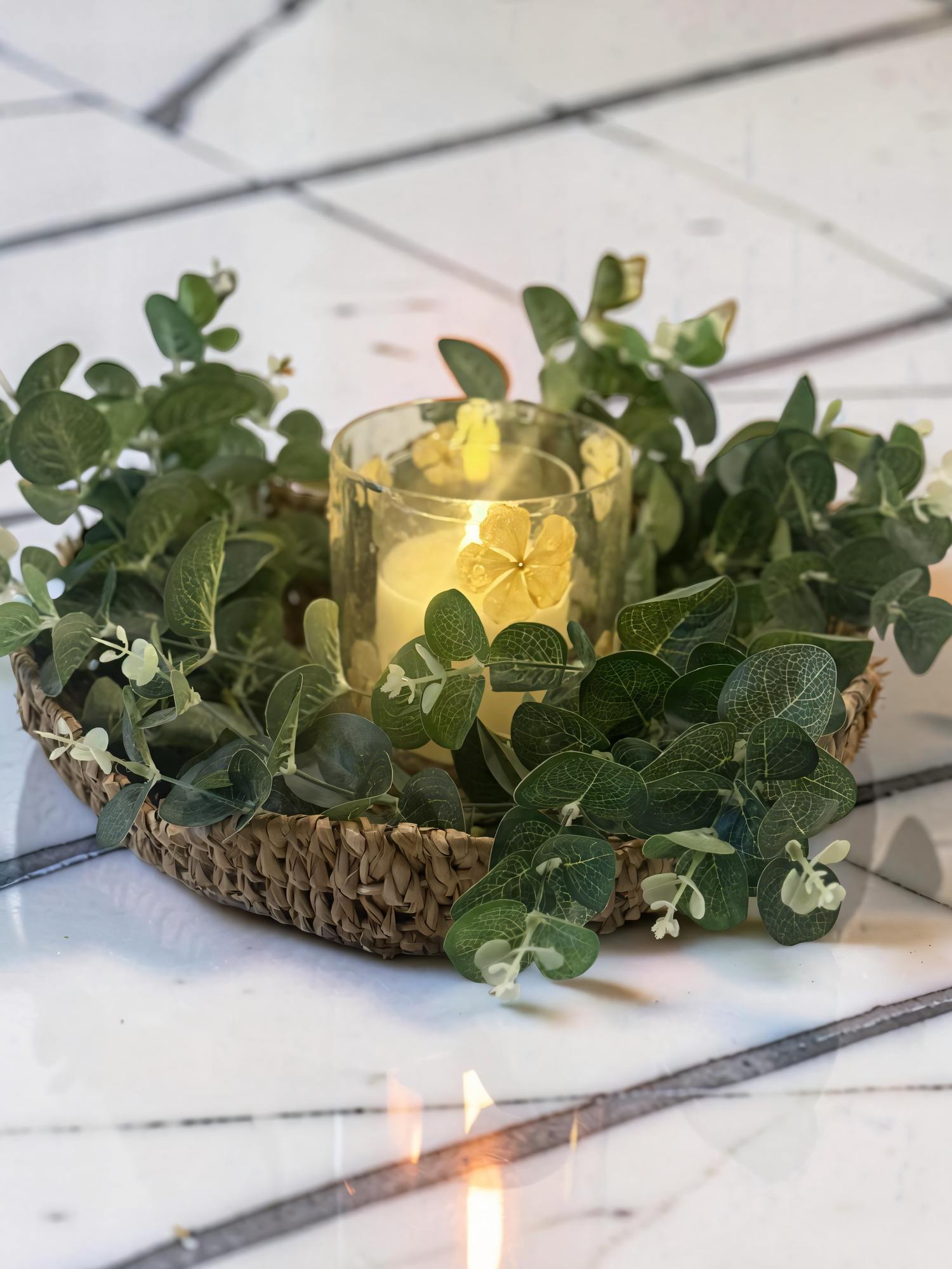Soft pink lilies, warm candlelight, and the sweetest little bunny detail… this is how you welcome spring home 🤍Layered on a natural wood tray, this look blends texture and glow so effortlessly. The green floral vase brings a fresh garden feel, while the mosaic glass votives cast the prettiest warm shimmer once lit. And that neutral bunny? The perfect subtle touch of charm without feeling overdone.It’s simple. It’s curated. It feels lived in and loved.Style it on your kitchen island, coffee table, or entryway to create a moment that feels intentional and beautifully pulled together — without trying too hard. 🌸✨